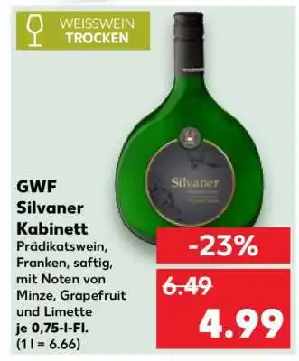 Jetzt im Angebot bei Kaufland: GWF Silvaner Kabinett ✅ Aktion gültig vom 8-01 bis 14-01.