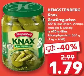 Jetzt im Angebot bei Kaufland: HENGSTENBERG Knax Gewürzgurken ✅ Aktion gültig vom 18-12 bis 24-12.
