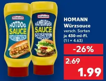 Diese Woche ist HOMANN Würzsauce bei Kaufland reduziert erhältlich. Hier finden Sie alle Informationen zu Preisen, Aktionsdetails und Laufzeit. Prüfen Sie weitere HOMANN Würzsauce Aktionen, um sicherzugehen, dass Sie den besten Preis erhalten. Die HOMANN Würzsauce Aktion gilt in Kalenderwoche 05. Nach Ablauf zeigen wir Ihnen vergleichbare Alternativen. Abonnieren Sie die Kategorie, um beim nächsten Mal direkt informiert zu sein, wenn HOMANN Würzsauce wieder reduziert ist.Häufig gestellte Fragen über HOMANN Würzsauce
