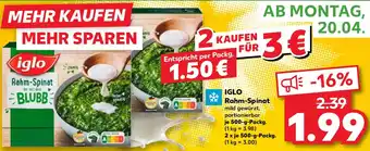 Jetzt im Angebot bei Kaufland: IGLO Rahm-Spinat ✅ Aktion gültig vom 19-04 bis 22-04.