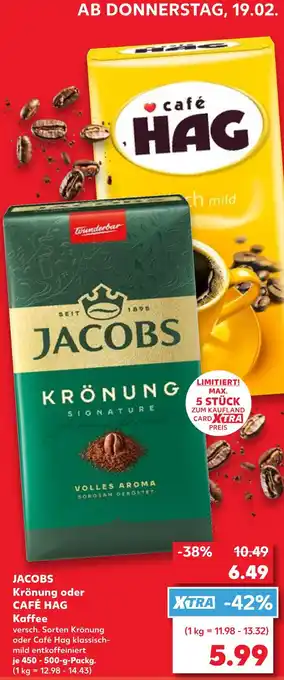 Jetzt im Angebot bei Kaufland: Jacobs krönung oder café hag kaffee ✅ Aktion gültig vom 23-02 bis 25-02.