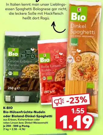 K-BIO Bio-Hülsenfrüchte-Nudeln oder Bioland-Dinkel-Spaghetti Angebote und Aktionen bei Kaufland