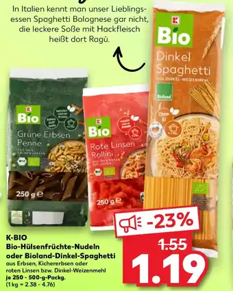 K-BIO Bio-Hülsenfrüchte-Nudeln oder Bioland-Dinkel-Spaghetti-Angebot bei Kaufland