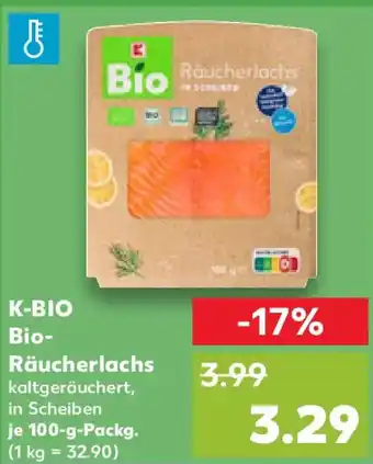 Jetzt im Angebot bei Kaufland: K-BIO Bio- Roucherlachs ✅ Aktion gültig vom 18-01 bis 21-01.