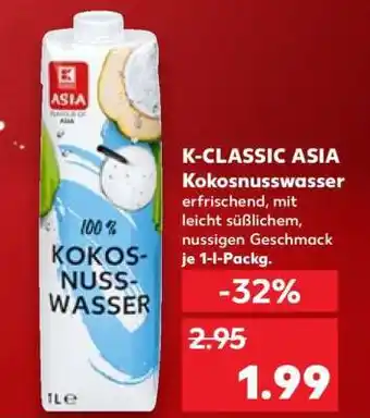 Jetzt im Angebot bei Kaufland: K-CLASSIC ASIA Kokosnusswasser ✅ Aktion gültig vom 2-01 bis 7-01.