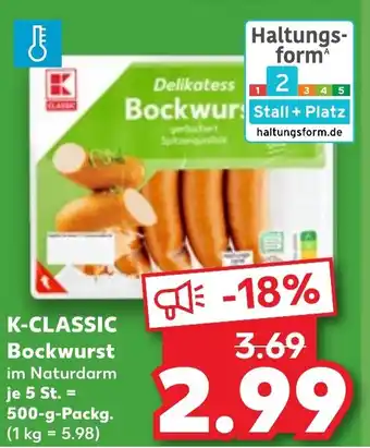 Jetzt im Angebot bei Kaufland: K-CLASSIC Bockwurst ✅ Aktion gültig vom 15-01 bis 21-01.