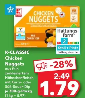 Jetzt im Angebot bei Kaufland: K-classic chicken nuggets mit curry-dip ✅ Aktion gültig vom 12-02 bis 18-02.