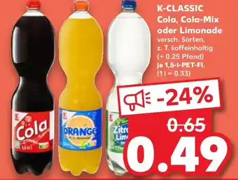 K-CLASSIC Cola, Cola-Mix oder Limonade-Angebot bei Kaufland