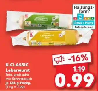 Jetzt im Angebot bei Kaufland: K-CLASSIC Leberwurst ✅ Aktion gültig vom 29-12 bis 31-12.