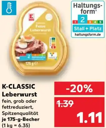 Jetzt im Angebot bei Kaufland: K-CLASSIC Leberwurst ✅ Aktion gültig vom 2-01 bis 7-01.