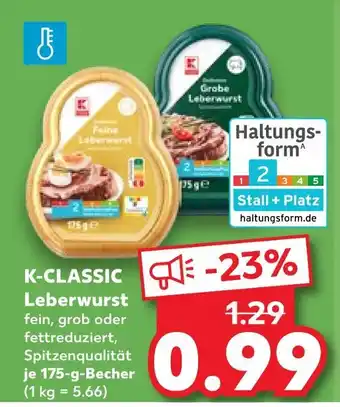 Jetzt im Angebot bei Kaufland: K-classic leberwurst ✅ Aktion gültig vom 16-02 bis 18-02.