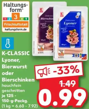 K-CLASSIC Lyoner, Bierwurst oder Bierschinken-Rabatt bei Kaufland