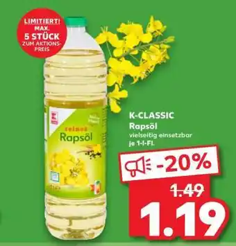 Jetzt im Angebot bei Kaufland: K-CLASSIC Rapsöl ✅ Aktion gültig vom 2-01 bis 7-01.