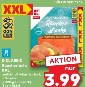 Jetzt im Angebot bei Kaufland: K-CLASSIC Räucherlachs XXL ✅ Aktion gültig vom 18-12 bis 24-12.