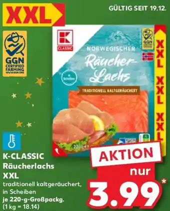 Jetzt im Angebot bei Kaufland: K-CLASSIC Räucherlachs XXL ✅ Aktion gültig vom 21-12 bis 24-12.