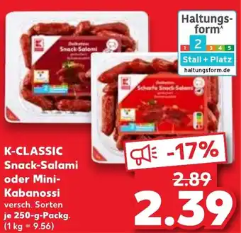 K-CLASSIC Snack Salami oder Mini Kabanossi 250 g