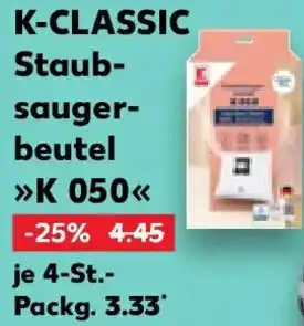 Jetzt im Angebot bei Kaufland: K-CLASSIC Staubsaugerbeutel K 050 ✅ Aktion gültig vom 25-01 bis 28-01.