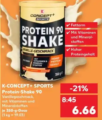 Jetzt im Angebot bei Kaufland: K-CONCEPT+ SPORTS Protein-Shake 90 ✅ Aktion gültig vom 23-04 bis 29-04.