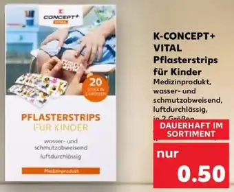 Jetzt im Angebot bei Kaufland: K-CONCEPT+ VITAL Pflasterstrips für Kinder ✅ Aktion gültig vom 2-01 bis 7-01.