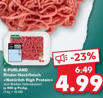 Jetzt im Angebot bei Kaufland: K-PURLAND Rinder-Hackfleisch Natürlich High Protein ✅ Aktion gültig vom 22-01 bis 28-01.