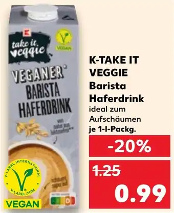 Jetzt im Angebot bei Kaufland: K-TAKE IT VEGGIE Barista Haferdrink ✅ Aktion gültig vom 22-01 bis 28-01.