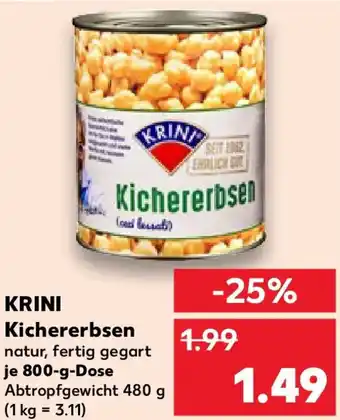 Jetzt im Angebot bei Kaufland: KRINI Kichererbsen ✅ Aktion gültig vom 11-01 bis 14-01.