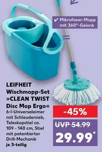 Jetzt im Angebot bei Kaufland: LEIFHEIT Wischmopp-Set CLEAN TWIST Disc Mop Ergo ✅ Aktion gültig vom 16-02 bis 18-02.