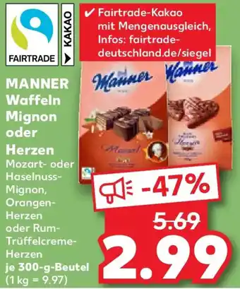 Jetzt im Angebot bei Kaufland: MANNER Waffeln Mignon oder Herzen ✅ Aktion gültig vom 4-01 bis 7-01.