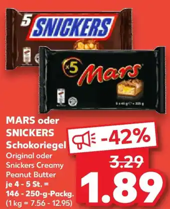 Jetzt im Angebot bei Kaufland: MARS oder SNICKERS Schokoriegel ✅ Aktion gültig vom 25-01 bis 28-01.