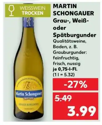 Jetzt im Angebot bei Kaufland: MARTIN SCHONGAUER Grau-, Weiß- oder Spätburgunder ✅ Aktion gültig vom 8-01 bis 14-01.