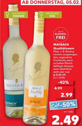 Jetzt im Angebot bei Kaufland: Maybach weisswein feinherb ✅ Aktion gültig vom 9-02 bis 11-02.