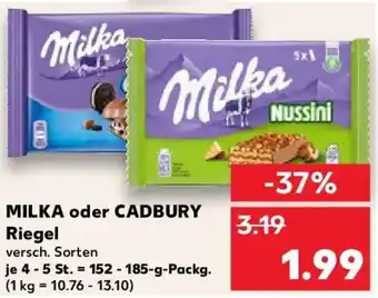 Jetzt im Angebot bei Kaufland: MILKA oder CADBURY Riegel ✅ Aktion gültig vom 14-12 bis 17-12.