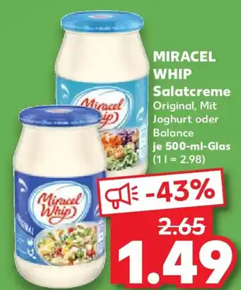 Jetzt im Angebot bei Kaufland: MIRACEL WHIP Salatcreme ✅ Aktion gültig vom 25-01 bis 28-01.