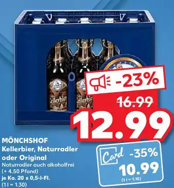 MÖNCHSHOF Kellerbier, Naturradler oder Original Ka. 20 x 0,5 l Fl.-Angebot bei Kaufland