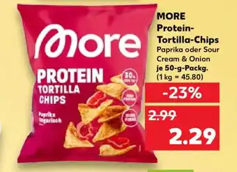 Jetzt im Angebot bei Kaufland: MORE Protein- Tortilla-Chips ✅ Aktion gültig vom 23-04 bis 29-04.