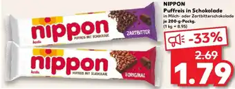 Jetzt im Angebot bei Kaufland: NIPPON Puffreis in Schokolade ✅ Aktion gültig vom 1-02 bis 4-02.