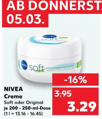 Jetzt im Angebot bei Kaufland: Nivea creme soft oder original ✅ Aktion gültig vom 2-03 bis 4-03.