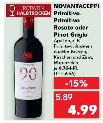 Jetzt im Angebot bei Kaufland: NOVANTACEPPI Primitivo, Primitivo Rosato oder Pinot Grigio ✅ Aktion gültig vom 26-02 bis 4-03.