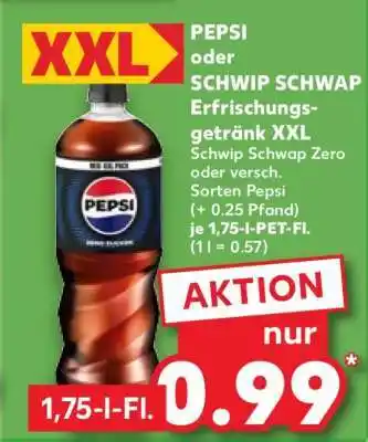 Jetzt im Angebot bei Kaufland: PEPSI oder SCHWIP SCHWAP Erfrischungsgetränk XXL ✅ Aktion gültig vom 23-02 bis 25-02.