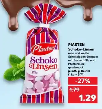 Jetzt im Angebot bei Kaufland: PIASTEN Schoko-Linsen ✅ Aktion gültig vom 22-01 bis 28-01.