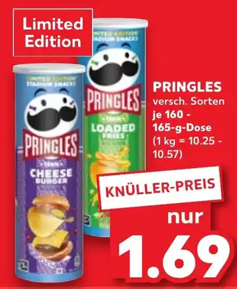 Diese Woche ist Pringles bei Kaufland reduziert erhältlich. Hier finden Sie alle Informationen zu Preisen, Aktionsdetails und Laufzeit. Prüfen Sie weitere Pringles Aktionen, um sicherzugehen, dass Sie den besten Preis erhalten. Die Pringles Aktion gilt in Kalenderwoche 04. Nach Ablauf zeigen wir Ihnen vergleichbare Alternativen. Abonnieren Sie die Kategorie, um beim nächsten Mal direkt informiert zu sein, wenn Pringles wieder reduziert ist.Häufig gestellte Fragen über Pringles
