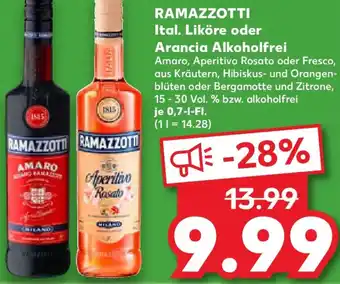 RAMAZZOTTI Ital. Liköre oder Arancia Alkoholfrei-Rabatt bei Kaufland