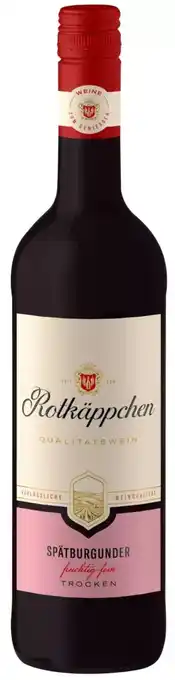 Das Angebot ist in verschiedenen Geschäften erhältlich. Schauen Sie sich alle Produkte an, um das günstigste Rotkäppchen Qualitätsweine zu ergattern. Wenn Sie gerne nachschauen möchten, ob der Artikel woanders noch günstiger ist, werfen Sie einen Blick auf die Kategorie 'Supermärkte'. Möglicherweise sind diese Angebote auch interessant für Sie: ROTKÄPPCHEN, Rotkäppchen halbtrocken & Rotkäppchen sekt.