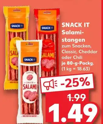 Jetzt im Angebot bei Kaufland: Snack it salamistangen classic ✅ Aktion gültig vom 5-02 bis 11-02.