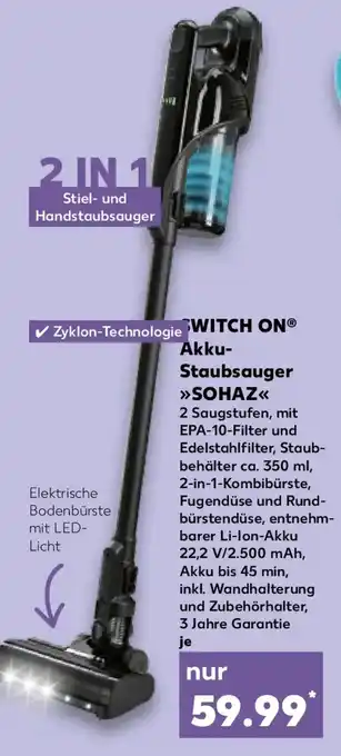 Jetzt im Angebot bei Kaufland: SWITCH ON Akku- Staubsauger SOHAZ ✅ Aktion gültig vom 11-02 bis 18-02.