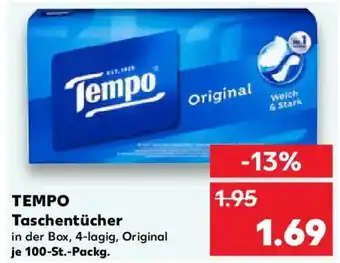 Jetzt im Angebot bei Kaufland: TEMPO Taschentücher ✅ Aktion gültig vom 14-12 bis 17-12.