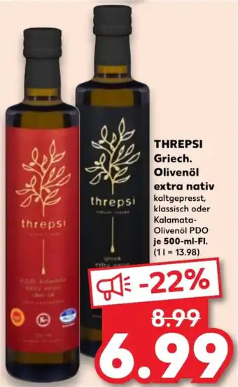 Jetzt im Angebot bei Kaufland: THREPSI Griech. Olivenöl extra nativ ✅ Aktion gültig vom 29-01 bis 4-02.
