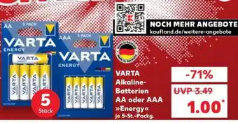 VARTA Alkaline-Batterien AA oder AAA Energy je 5-St.-Packg-Angebot bei Kaufland