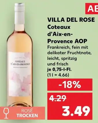 Jetzt im Angebot bei Kaufland: VILLA DEL ROSE Coteaux d'Aix-en- Provence AOP ✅ Aktion gültig vom 15-01 bis 21-01.