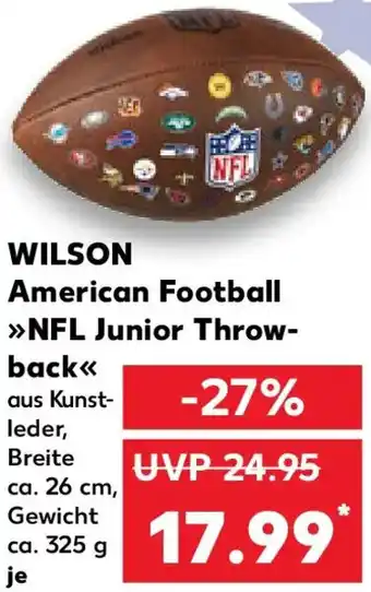 Jetzt im Angebot bei Kaufland: WILSON American Football NFL Junior Throwback ✅ Aktion gültig vom 21-01 bis 28-01.